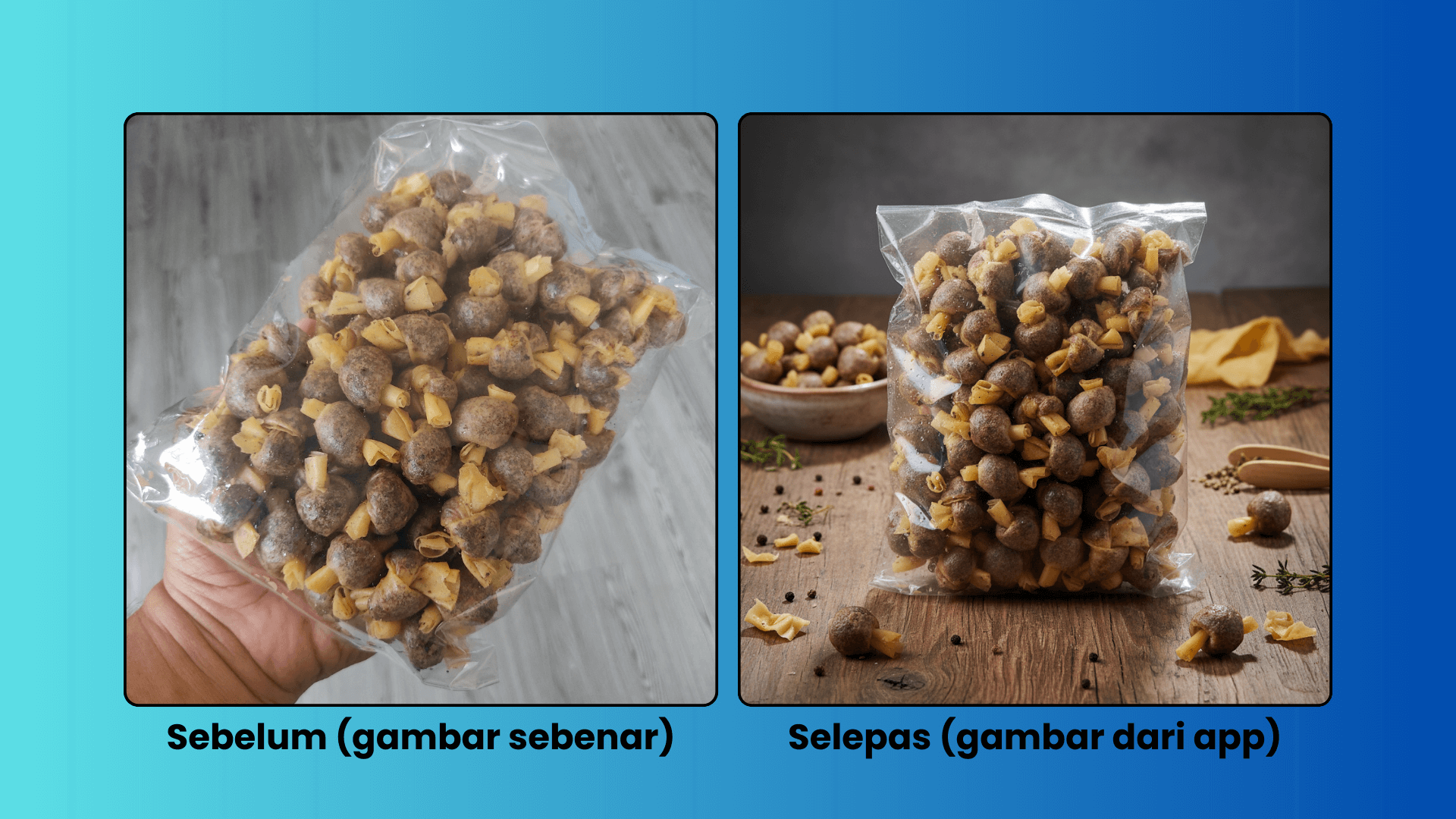 - Visual lebih meyakinkan – gambar nampak premium, bukan sekadar foto produk kosong