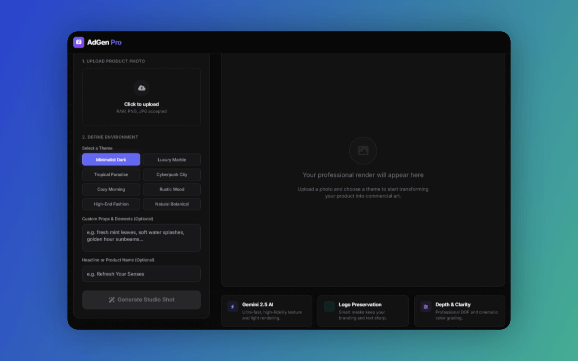 Aplikasi ini membolehkan anda menukar gambar produk biasa kepada gambar iklan yang profesional dengan menggunakan AI. Hanya upload gambar produk, pilih tema iklan, dan sistem AI akan menjana gambar versi “ads-ready” yang nampak seperti hasil studio mahal.