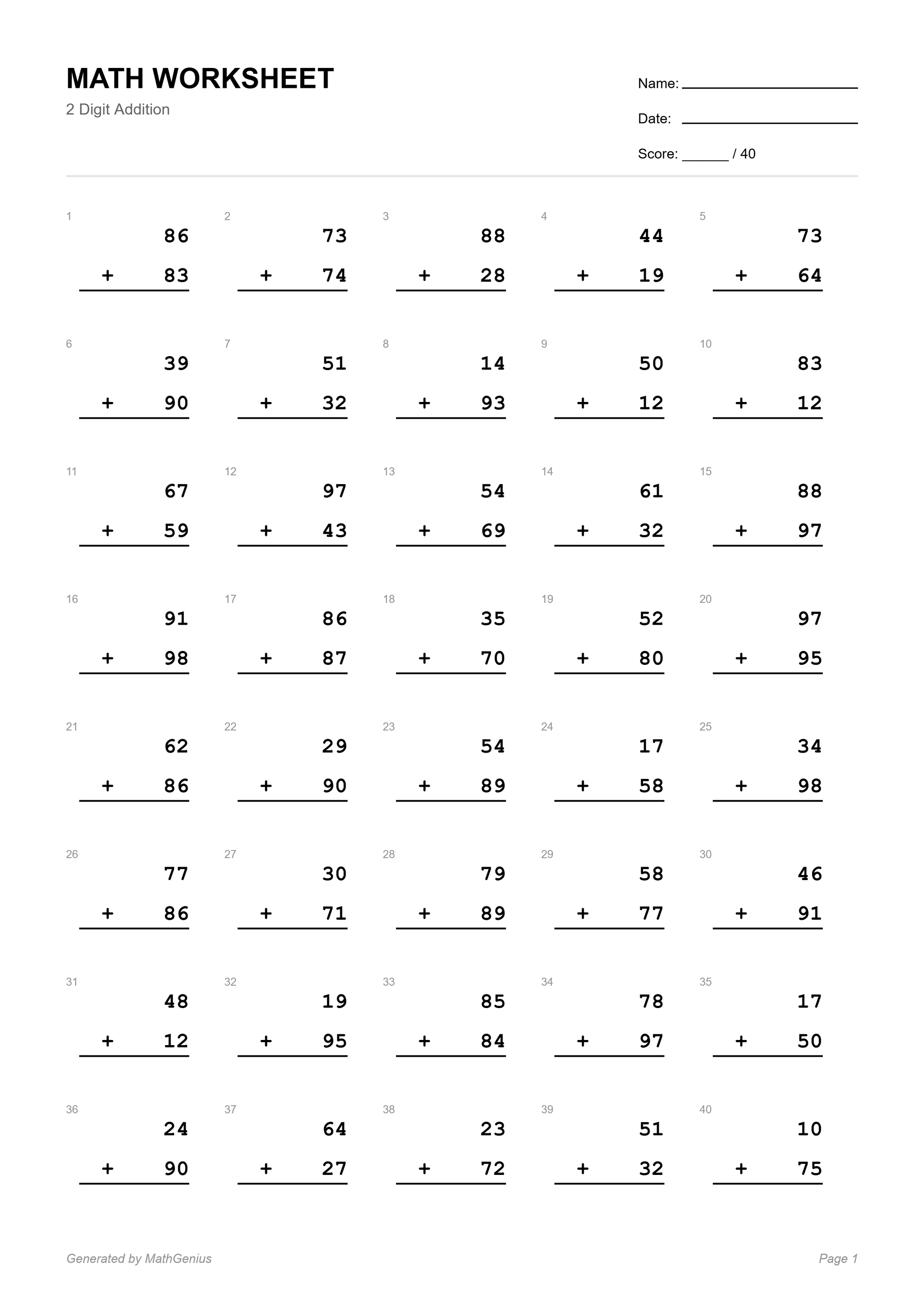 Aplikasi ini membolehkan pengguna menjana set soalan Matematik yang melibatkan operasi tambah dan tolak, dengan pilihan digit 1 hingga 4 angka.