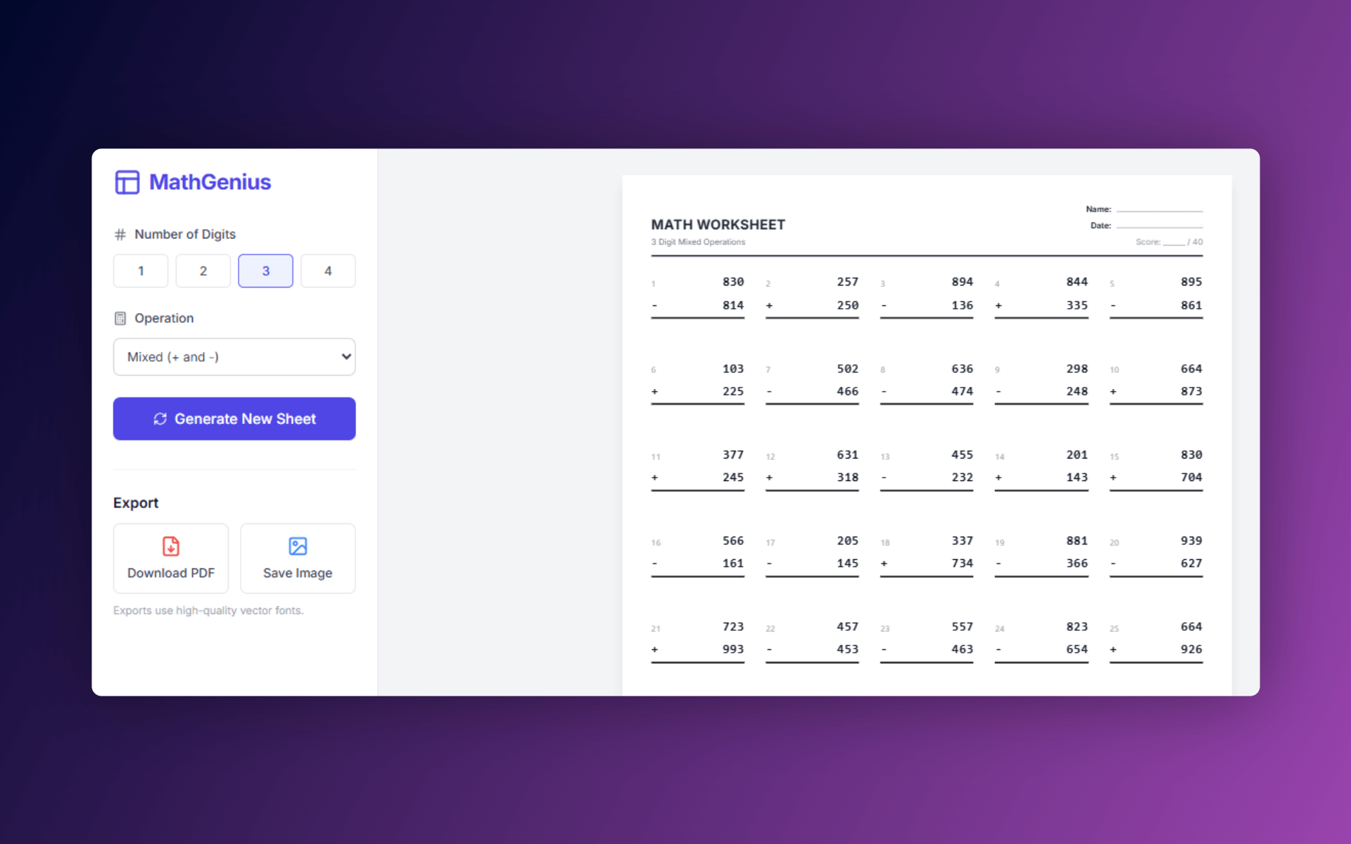 [FREE] Mathematic Worksheet Builder App (Addition & Substraction)